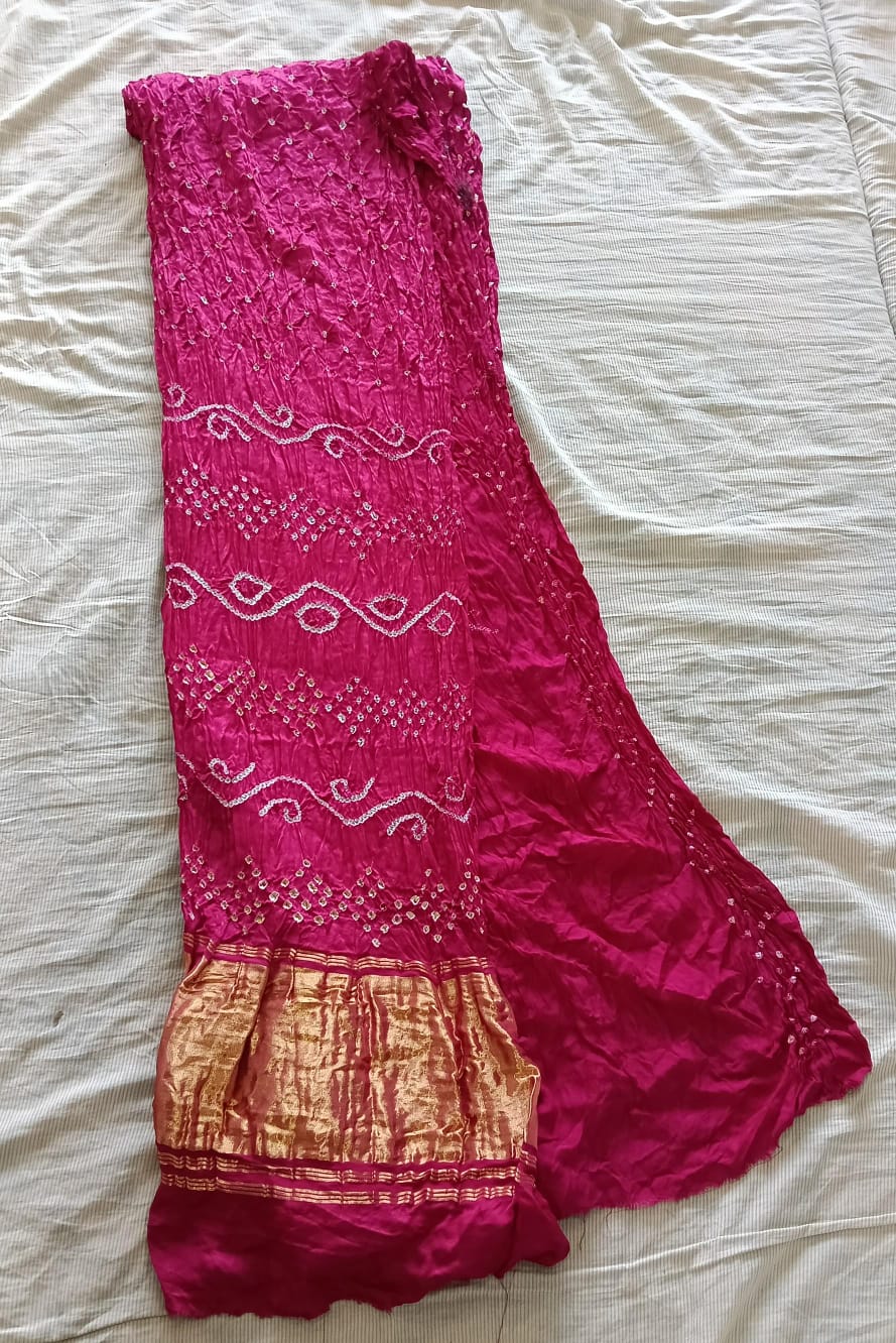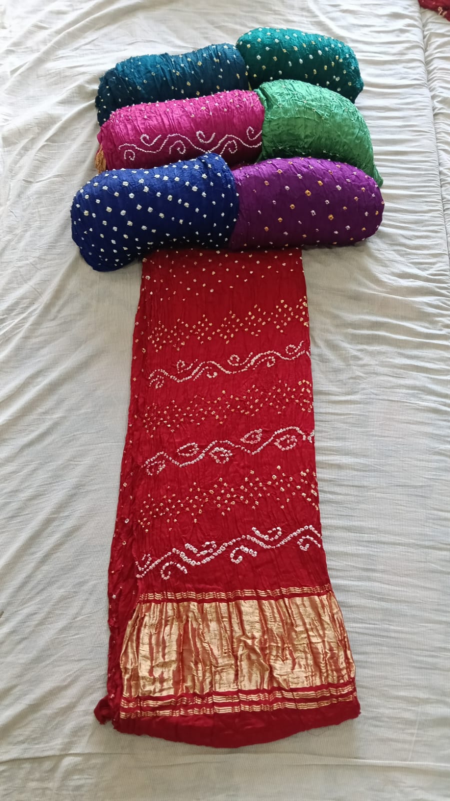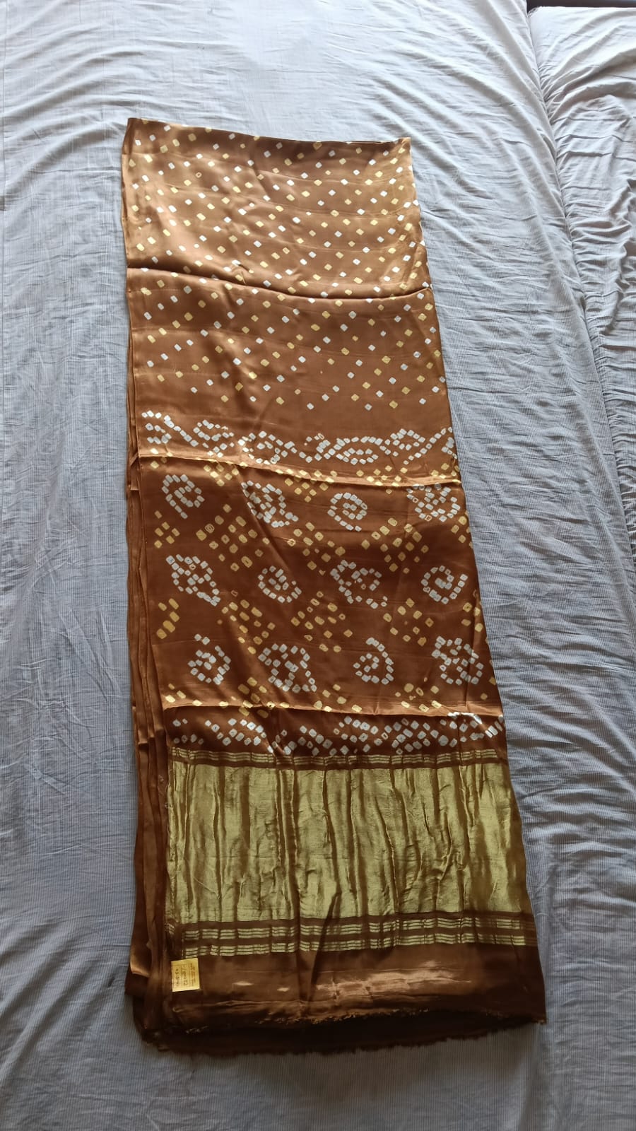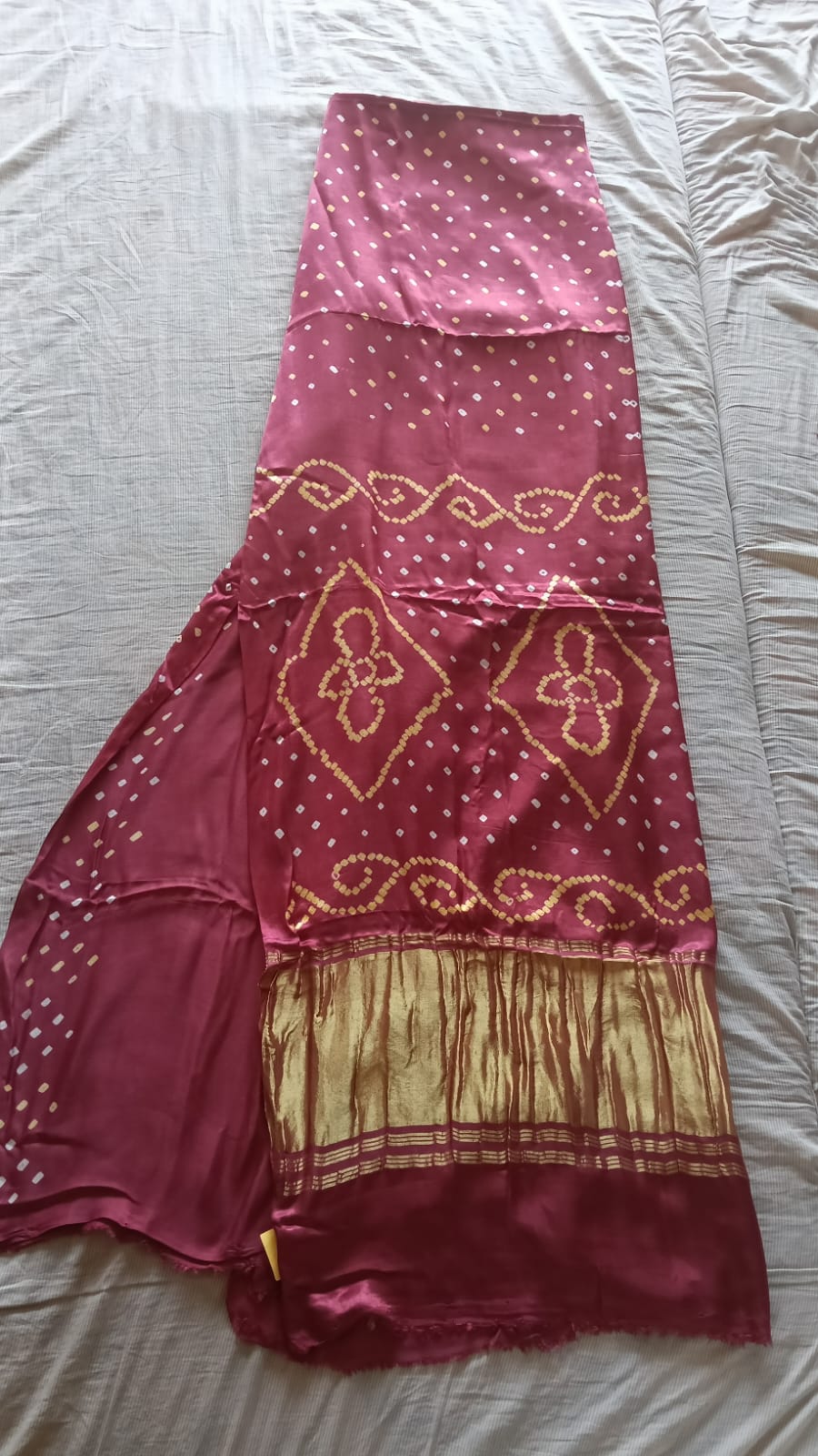 Elegant Gaji Silk Dani Saree featuring traditional Bandhani-style dani work with rich festive detailing.