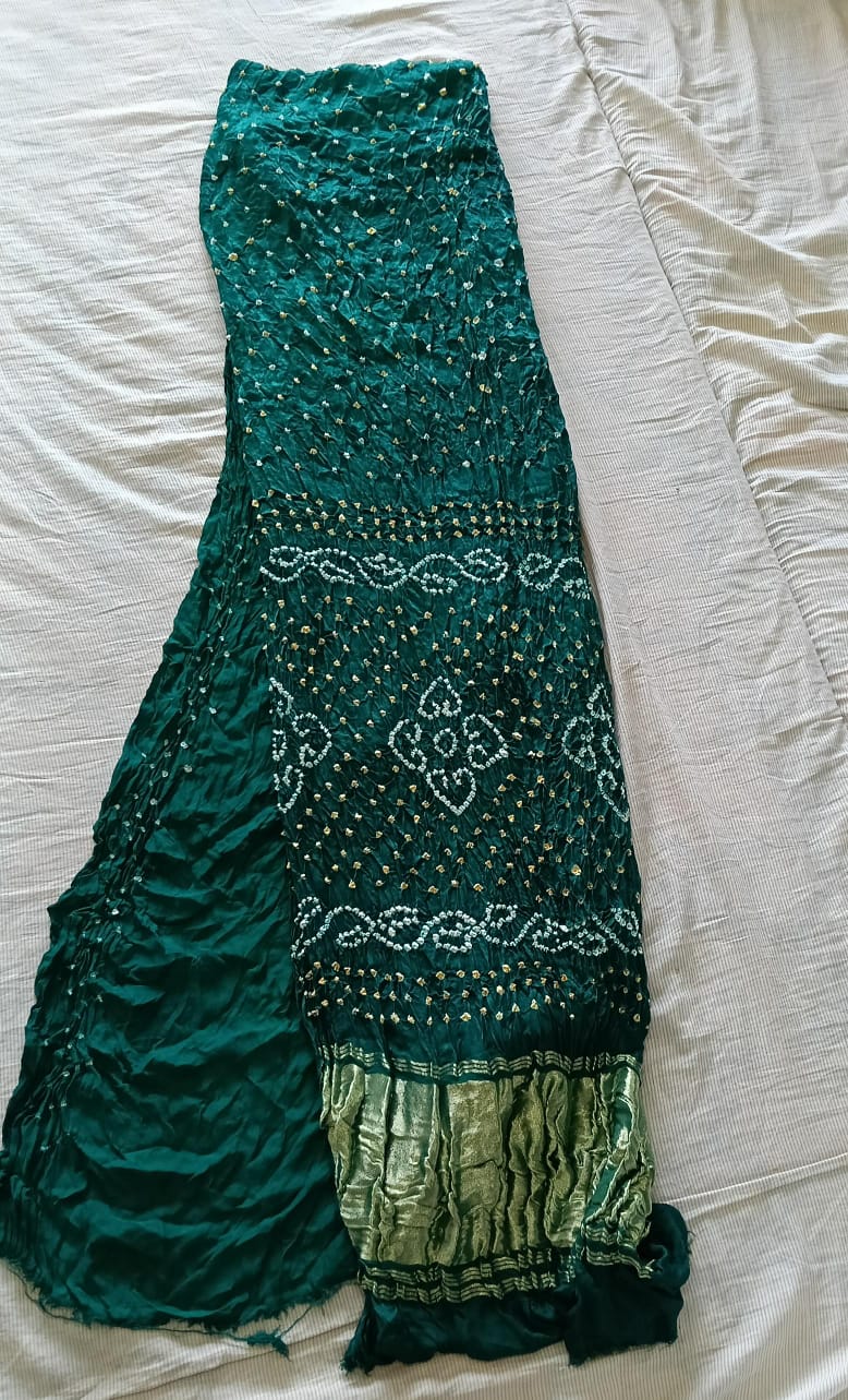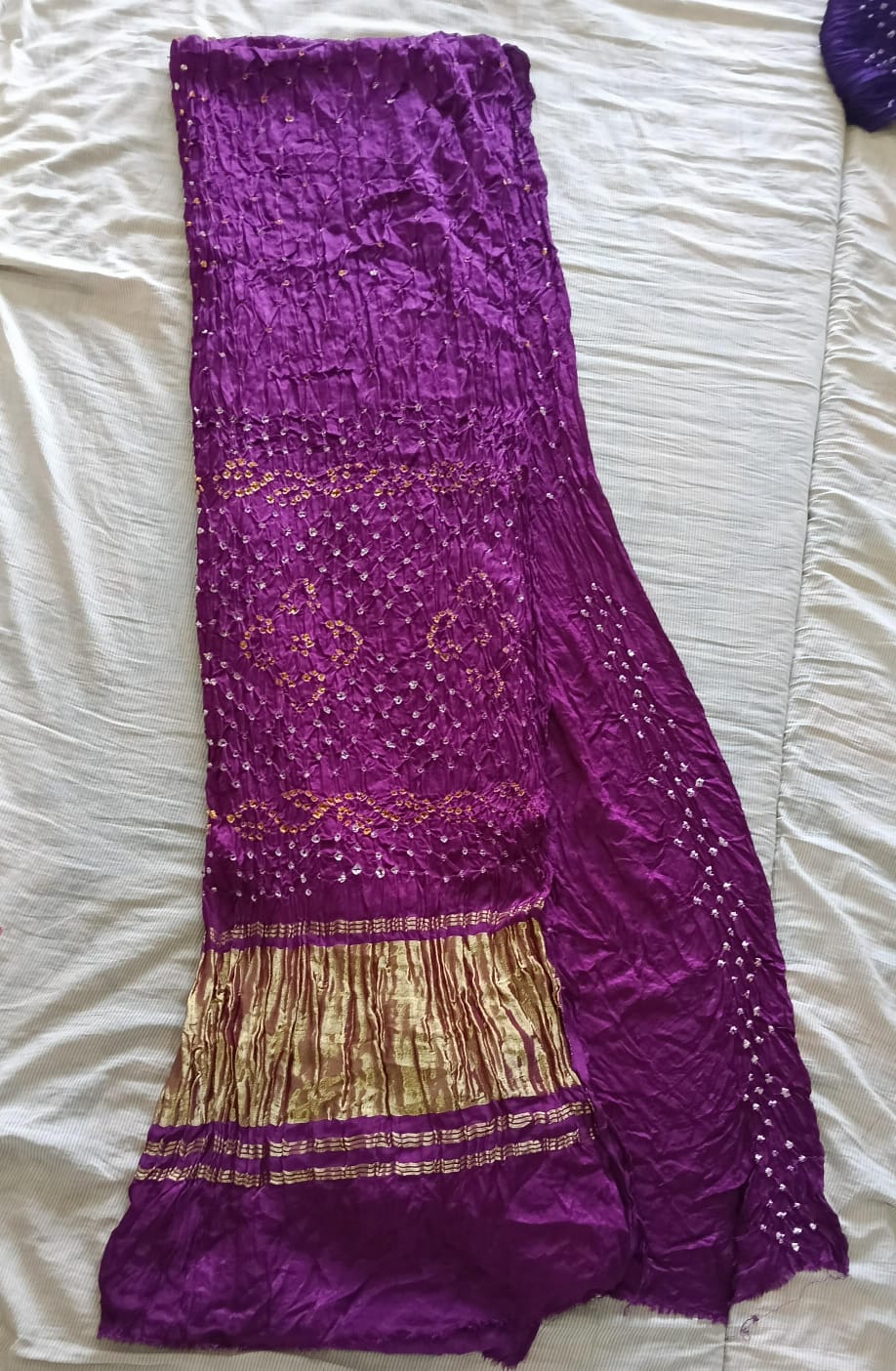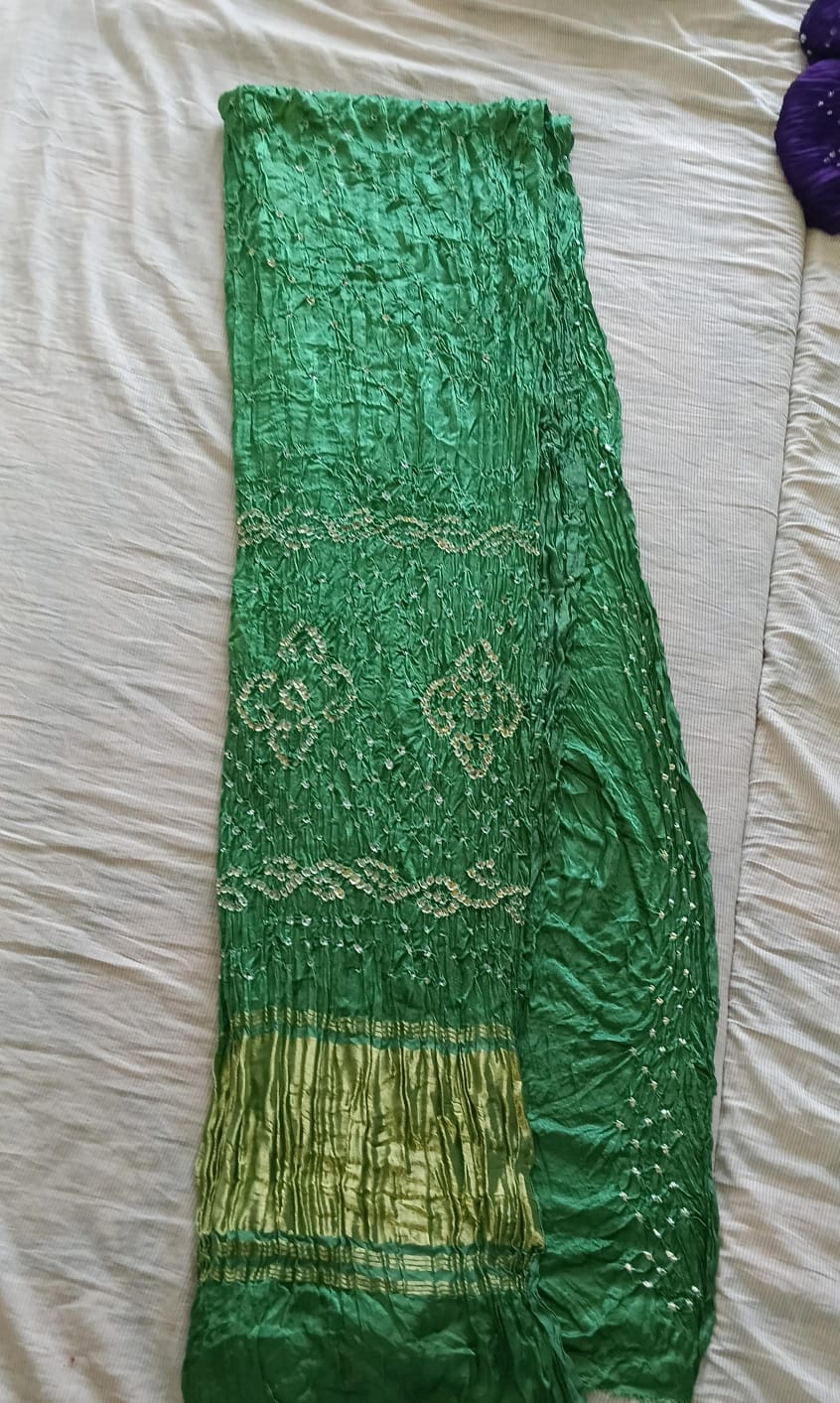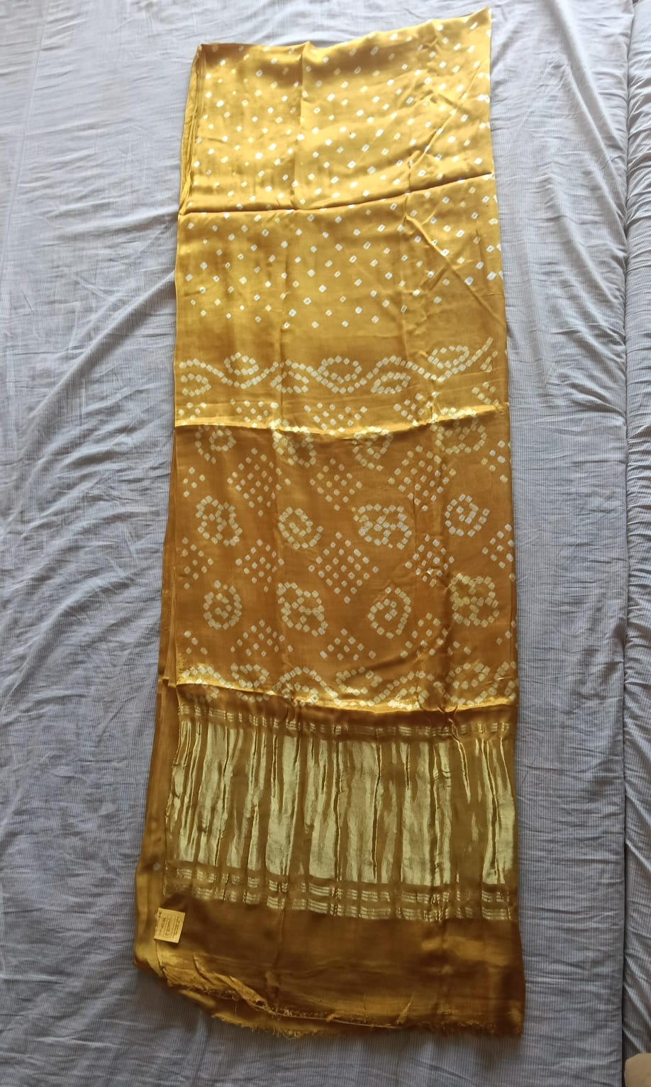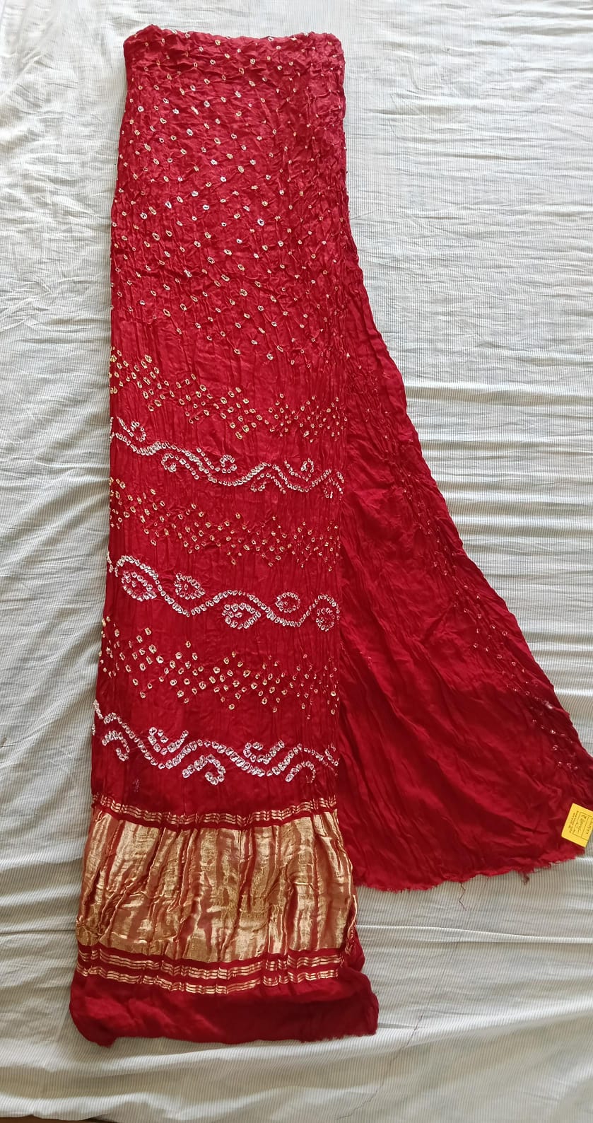 Elegant Gaji Silk Dani Saree featuring traditional Bandhani-style dani work with rich festive detailing.