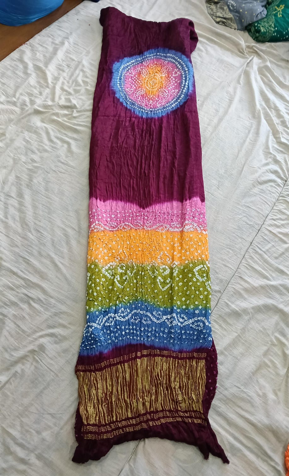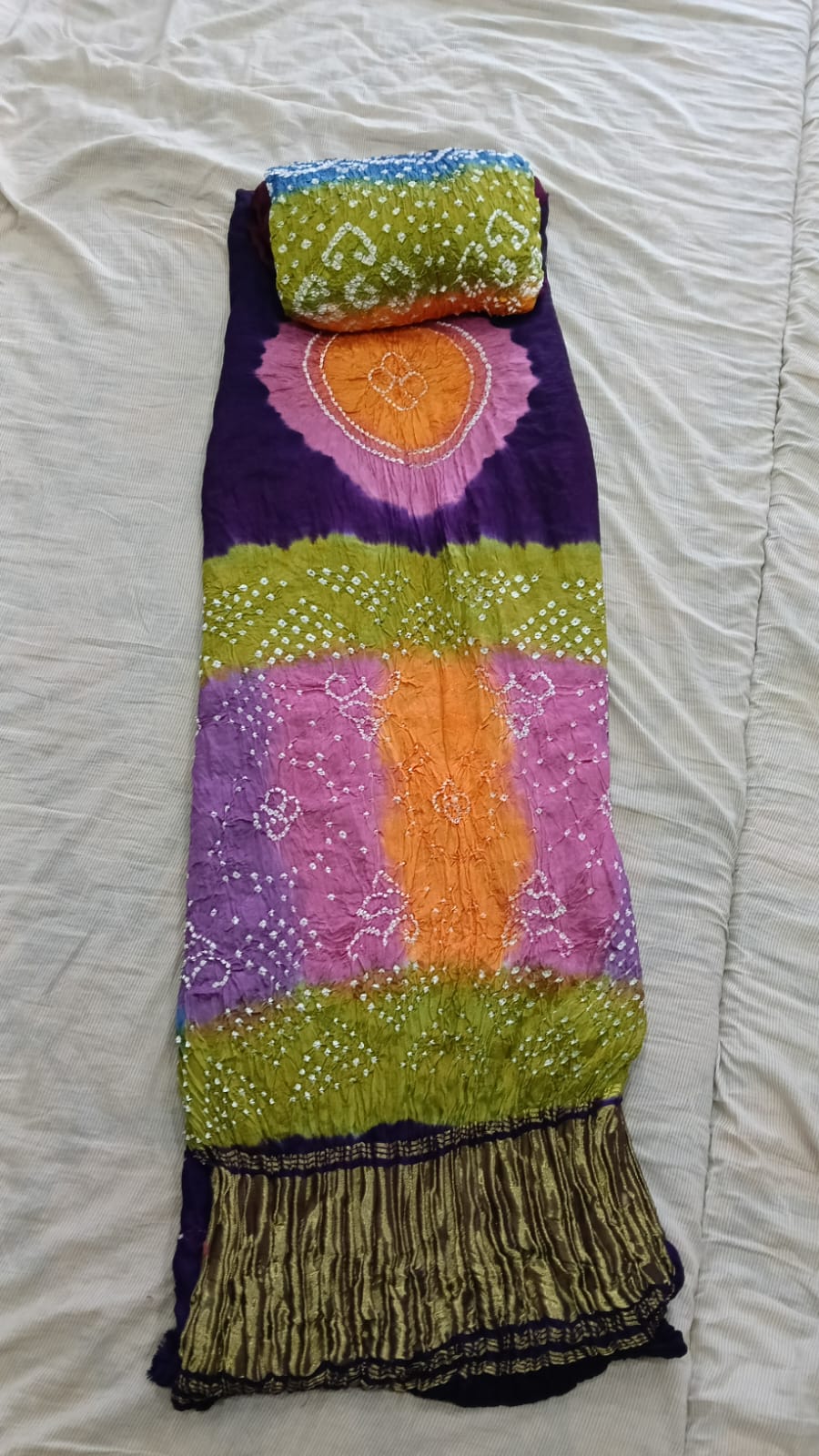 Premium Gaji Multi Gada Saree featuring beautiful traditional multi-gada Bandhani design with rich festive appeal.